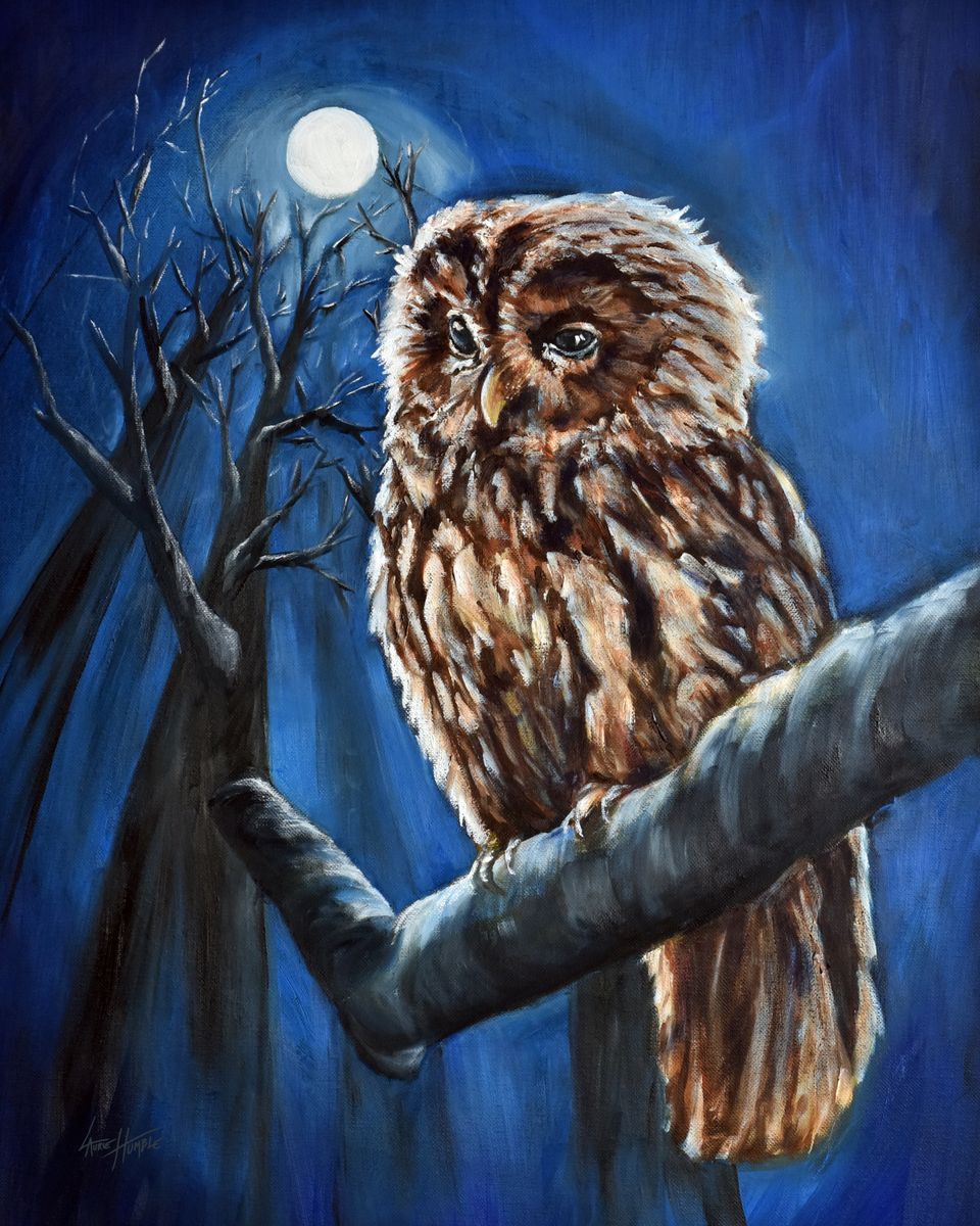 In the ethereal transition between day and night, this commanding presence emerges from shadow and light. Night Owl captures the profound stillness of twilight through masterful brushwork and nuanced color relationships that speak to the contemplative collector.
